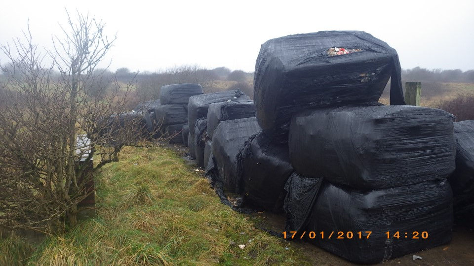 The majority of the waste dumped was mixed municipal waste, wrapped in plastic to form bales.